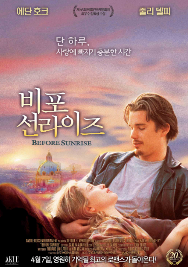 영화의 감상평을 알려드립니다. 영화 초반에 주인공 둘이 사랑에 빠지는 과정들이 조금은 지루합니다. 영화의 대부분이 둘의 대화입니다. 배우가 대사를 다 외우는데 힘들었겠다는 생각이 들었습니다. 중간에 손금 봐주는 할머니, 시를 써주는 부랑자도 나오긴 합니다. 하지만 주인공 외에 사람들은 굉장히 짧게 등장하고 사라집니다. 그래서 흥미진진한 스토리를 기대하신다면 실망할 수 있습니다. 줄거리 자체는 매우 간단합니다. 유럽여행에서 우연히 만나게 된 두 남녀가 사랑에 빠지는 이야기입니다. 혼자 여행을 즐기는 사람들에게 로망인 것 같습니다. 실제로 낯선 여행지에서 사랑에 빠지게 되는 경우는 흔하지 않습니다. 그래도 아예 없는 일은 아닙니다. 제 친구는 최근에 여행지에서 만난 남자와 결혼했습니다. 영화가 비현실적이진 않다고 생각합니다. 그리고 영화에서 왜 전화번호도 교환하지 않고 떠나는지 궁금합니다. 제시는 전화번호와 편지를 오히려 우울하다고 생각합니다. 영화는 열린 결말입니다. 마지막에 둘은 6개월 뒤에 헤어지는 장소와 같은 장소에서 만나기로 하고 헤어집니다. 과연 둘은 6개월 뒤에 만났을까요? 둘이 함께 보낸 하루가 진정으로 행복하고 소중했다면 잊지 않고 6개월뒤에 만났을 거라 생각합니다. 하지만 또 예기치 못한 이유로 만나지 못하게 될 수도 있습니다. 그리고 영화 비포 선라이즈는 시리즈 영화입니다. 후속 편 비포선셋, 비포 미드나잇이 있습니다. 후속 편이 두 편이나 나왔다니 비포 선라이즈의 인기가 실감됩니다. 둘이 과연 6개월 뒤에 만났을지는 비포선셋 영화에서 볼 수 있습니다. 잔잔한 로맨스 영화 비포선라이즈 추천드립니다.