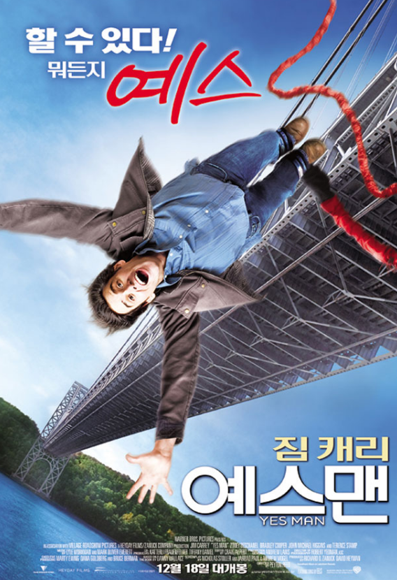 2008년에 개봉한 미국 코미디 영화 예스맨을 소개합니다. 영화 예스맨의 주연 배우는 짐 캐리와 주이 디샤넬입니다. 짐 캐리는 국내에서도 유명한 할리우드 배우입니다. 짐 캐리의 대표작 중 하나인 영화 예스맨의 줄거리와 감상평을 알려드립니다.