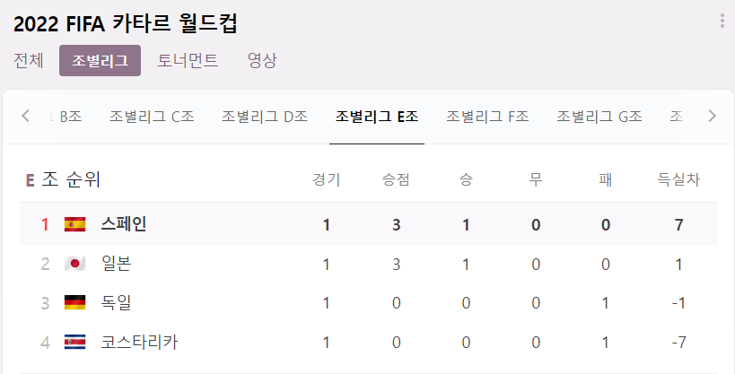 1. 2022년 카타르 월드컵 E조 순위