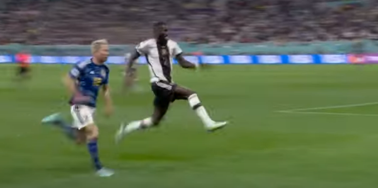 하지만 후반부 초반에 독일 선수 중 한 명인 안토니오 리뒤거가 일본 선수를 조롱하는 모습이 나옵니다. 리뒤거 선수는 수비하는 데 있어서 타조를 연상하듯 뛰며 일본 선수를 조롱했습니다. 현재 일부 해외 언론들도 리뒤거의 행동을 비판하고 있습니다. 이후 경기 분위기는 바뀌게 됩니다. 일본 선수들은 안정적인 수비를 바탕으로 적극적인 공격으로 경기를 펼치게 됩니다. 시간이 지날수록 독일 선수들의 체력은 떨어지게 되는 반면 일본 선수들은 맹렬한 공격을 펼치게 됩니다.